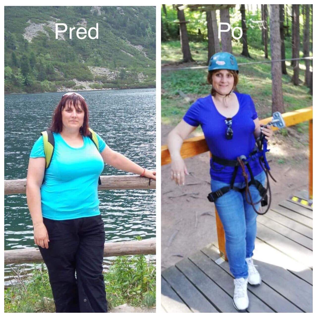Mám 38 rokov a počas môjho života som bojovala s váhou stále. Nie som typ „šťastného človeka“, ktorý si môže dopriať čokoľvek a kedykoľvek. Zlomový moment, čo sa týka váhy nastal po pôrode môjho syna. Všetok čas som venovala synovi a rodine a na seba som pozabudla. Keď som videla, že moja váha ide hore, začala som „diétovať“. Skúsila som množstvo diét od Dukanovej, Mačingovej, delenej stravy, Keto diéty..... Vždy to bolo bez úspechu a jojo efektu. Už teraz viem, že toto nebola tá správna cesta. A kedy nastal ten zlom? Presne si pamätám ten deň...... bol to prvý školský deň v septembri 2019. Pýtate sa prečo tento deň? Preto, že som sprevádzala svojho syna v škole a keď som uvidela našu pani riaditeľku /prvotná motivácia/, ako dobre vyzerá, tak som si hneď povedala: „to musím skúsiť aj ja – idem do toho“. Postupne som si pozisťovala informácie a nakontaktovala som sa na Janku, ktorú som oslovila s malou dušičkou a stým, že by som chcela zmeniť svoj životný štýl...... O dva týždne myslím som už bola účastníčkou „Kurzu chudnutia“ u Janky. Bez Janky a jej odbornej pomoci by som to nedala. Zo začiatku som mala obavy, či to zvládnem, nebolo to vždy jednoduché..... Človek je zvyknutý na konzumný spôsob života a zrazu sa musí všetko zmeniť. Ale teraz už viem, že všetko sa dá, keď má človek odhodlanie a hlavne chce. Na každé jedno stretnutie som sa tešila, ale išla som tam vždy s malou dušičkou, čo ukáže váha. Na druhej strane sa musím priznať, že táto spätná väzby od Janky mne veľmi pomáhala a motivovala ma ešte viac. Počas kurzu som sa naučila neskutočné množstvo nových vecí ohľadom jedla a potravín. Teraz viem, čo a v akom množstve môžem zjesť bez akýchkoľvek výčitiek. Zo začiatku som fungovala s váhou a kalorickými tabuľkami, no postupne som sa do všetkého dostala a dnes presne viem, čo a koľko si môžem naložiť na tanier a čo je dôležité, potraviny si vyberám. Samozrejme, že dôležitý bol a je aj pohyb. Začala som navštevovať intervalový tréning 2x do týždňa v RAJ fitnese, začala som chodiť na prevádzky, bicykel. V rámci kurzu som schudla 8kg. Pre mňa to bol neskutočný úspech a bola som rozhodnutá ísť ďalej. V tomto chcem poďakovať Janke, že i po skončení kurzu mi písala a zaujímala sa o to, ako sa mi darí. Na isté obdobie som musela prestať s cvičením zo zdravotných dôvodov, ale v stravovaní som pokračovala ďalej. Postupne som znova chcela začať s cvičením, ale predbehol ma „COVID“. Keď som ale zistila, že Janka precvičuje z domu – online, hneď som sa na to dala a začala som makať 3x do týždňa. Mnohé ženy povedia, že počas tohto obdobia pribrali, ja práve naopak, s váhou som išla dolu. Postupne som pridala bicykel, korčule. A keď som sa postavila na váhu a zistila, že dolu je už 18kg, sama som tomu neverila. Bola som neskutočne šťastná a namotivovaná pokračovať.... Postupne som začala rozmýšľať nad behom a jedného dňa som to vyskúšala. Začiatky boli ťažké, ale po čase som sa do toho dostala a dnes si neviem predstaviť svoj deň bez môjho „okruhu“ , ktorý sa snažím absolvovať každý deň. Je to v podstate čas, kedy po celom dni úplne vypínam, relaxujem a zároveň robím niečo pre seba. A z človeka, ktorý sa športom vyhýbal, sa zrazu „vykľula“ osoba, ktorá miluje rôzne športy: beh, korčule, bicykel, intervalový tréning, lyžovanie, turistiku..... Milujem aktívny život a momentálne si ho užívam všetkými desiatimi. A úprimne, keby mi bol niekto pred troma rokmi povedal, že raz budem „happy“ zo športových aktivít a že mojim najobľúbenejším oblečením budú šaty, tak ho vysmejem. Ale momentálne som takto nadstavená a užívam si to. Do dnešného dňa mám dolu 25kg, za čo vďačím práve Janke, jej vedomostiam, času, ktorý nám každej ochotne venovala a venuje. Jani veľká vďaka, bez teba by som to nikdy nedala. S odstupom času môžem povedať, že začať kurz s Jankou bolo to najlepšie rozhodnutie, aké som v poslednom období urobila. Ten pocit, keď si konečne môžete kúpiť a dopriať veci, ktoré ste doteraz nemohli je na nezaplatenie. Teraz viem, že to čo robím je správne a posúva ma to ďalej. A za toto všetko vďačím práve Janke, ktorá ma dokázala nakopnúť a za to ti patrí jedno veľké ďakujem. Jani si skvelý človek so srdiečkom na správnom mieste a si pre mnohé z nás veľkým vzorom. ĎAKUJEM PS: ak chceš aj ty zmeniť svoj život k lepšiemu a potrebuješ len osobu ktorá ťa správne nasmeruje, poradí, pomôže, namotivuje, tak Janka je ten správny človek.....